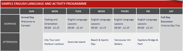科學與藝術的巡禮:為了兼顧知識性,計畫中包含了 科學世界 (Science World)、溫哥華美術館、以及 史蒂夫斯頓漁村 (Steveston Village) 的古蹟訪視。學生能在這些場所了解加拿大的科技發展與人文歷史。