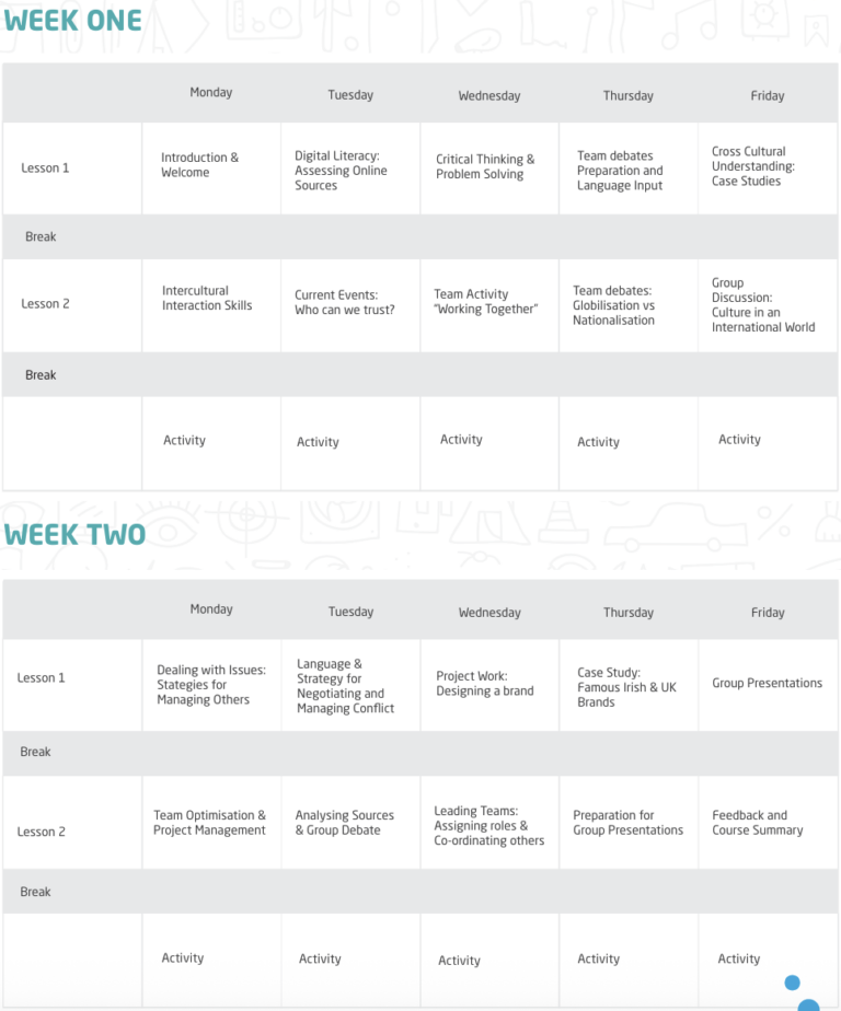 課程資訊 | 每週15小時英語課程與每日豐富活動